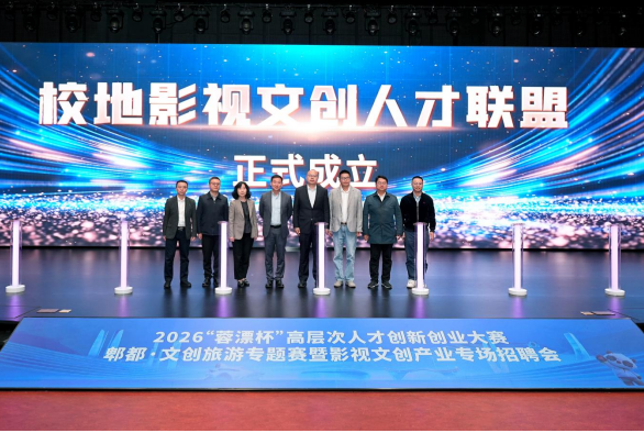 4月2日,由四川省委人才办指导,成都市委人才办主办,成都市人才发展促进中心、郫都区委人才办、郫都区人才发展和融合创新中心、郫都区人社局、成都影视城管委会、四川传媒学院联合承办的2026“蓉漂杯”高层次人才创新创业大赛郫都·文创旅游专题赛暨影视文创产业专场招聘会在四川传媒学院成功举办。