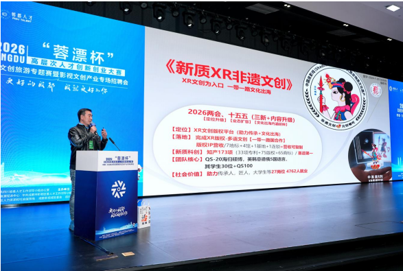 经过紧张而精彩的路演比拼,最终,时空回溯项目斩获一等奖,新质非遗-文化出海项目、情感交互实验室项目荣获二等奖,AI-数字气味项目、AGI+多维沉浸式体验项目、小圣诞老人Santa-来自中国的礼物项目荣获三等奖。网剧<<绣里乾坤>>项目、川流帧 (StreamVision)等项目荣获优胜奖。一二三等奖获奖项目将直接晋级2026“蓉漂杯”高层次人才创新创业大赛总决赛。
